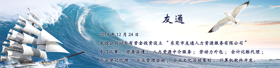 東莞市友誼國際勞務有限公司(DG-FESCO)于2004年3月成立,唯一獲準在東莞地區向外國及港澳臺企業駐粵代表機構提供中方雇員服務及勞動保障事務代理的專業公司。友誼國際以專業服務與東莞外企建立相互信任的合作關系,目前,擁有六百多家客戶,派遣雇員一萬多人。 我司建立了一支經驗豐富的人力資源服務的專業隊伍,形成了我司獨有的經營風格和服務理念;不僅為外商常駐我省商務代表機構和投資企業做了令人滿意的服務,而且使其聘用中方雇員的工作納入了正常管理。 我們的承諾:為企業提供科學、規范的管理;優質、快捷的服務;誠實、信用的處事;友好、互利的合作伙伴。我們是外資企業的好助手,好伙伴。